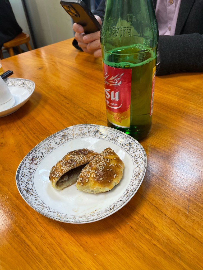Unlike the crispy duck commonly found in England, Beijing’s version was much sweeter—made even more so by the traditional way of eating it – let me explain. You were supplied with a duck breast (or half, depending on how hungry you were), served alongside pancakes, cucumber, spring onion, white sugar, sweet gelatin, and a rich sweet bean sauce.