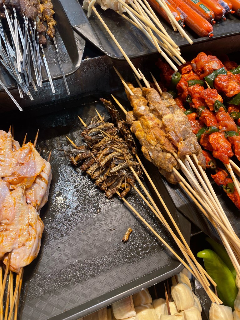 The choices consisted of insects, oysters and meat on sticks. I enclose a few photos of said options and what my group decided to order.