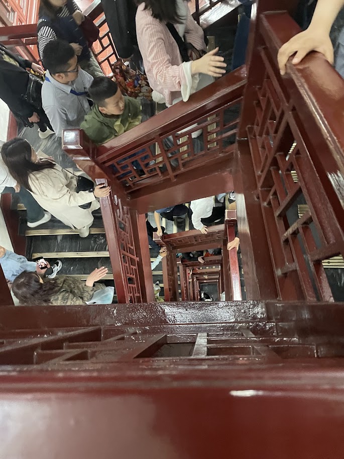 To get inside the Yellow Crane Tower, there were huge queues in the pouring rain. This didn’t dampen my spirits though, as I had brought a raincoat – whilst I may not have researched the weather in Wuhan explicitly, I am always prepared for any weather!