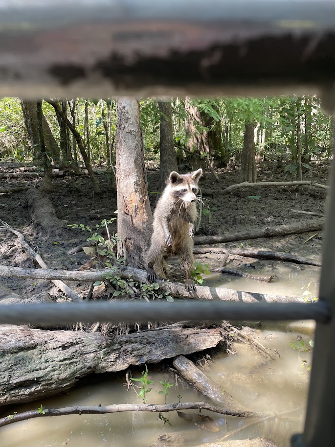 Alligators swam up next to the boat, we fed wild racoons and we got to hold some enormous insects – a really fun experience.