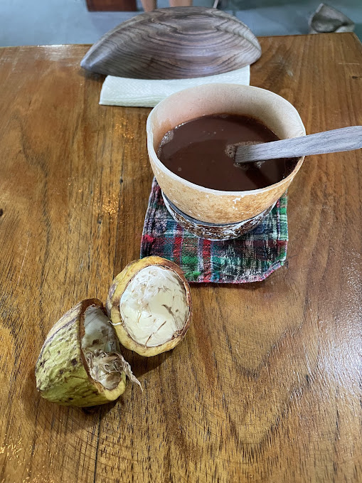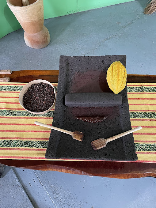I learned how to make traditional Mayan chocolate, grinding roasted cacao beans by hand on a stone slab until they became a thick, glossy paste. I tried the Mayan chocolate drink with chilli and honey (for some natural sweetness) – it was absolutely delicious.