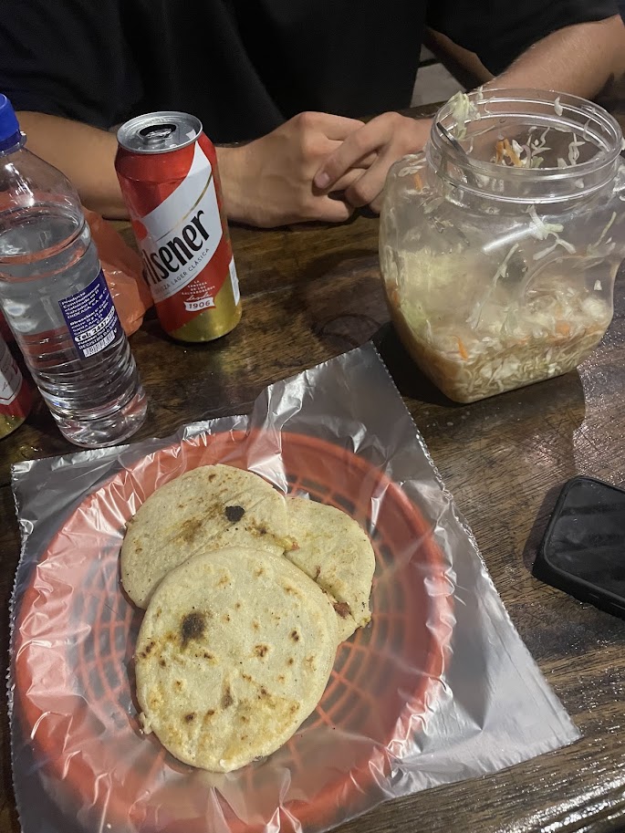 You can’t leave El Salvador without trying pupusas – thick griddled corn pockets stuffed with cheese, beans, pork crackling, or squash, served with curtido (a tangy pickled cabbage) and tomato salsa. They’re the national dish, best eaten fresh from a street stall, and they cost next to nothing.